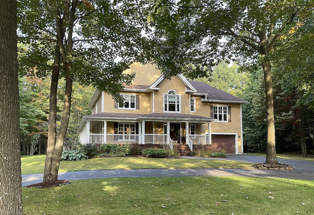 Érigée sur un magnifique terrain de plus de 93 000 pi², bordé d'arbres matures, elle bénéficie d'une atmosphère paisible et d'une grande intimité, tout en étant située dans un secteur tranquille, à proximité d'un accès à la rivière Saint-François. Vous profiterez également de stationnements multiples.