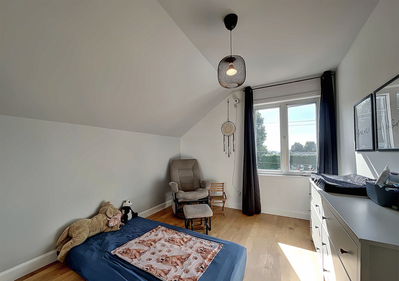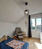 Dès l'entrée, vous serez impressionné par le salon à plafond cathédrale, baigné de lumière naturelle, qui crée une ambiance unique et conviviale. La maison comprend quatre chambres de belles dimensions, idéales pour une grande famille ou pour aménager un bureau à domicile.