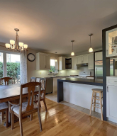 La maison offre une belle disposition des pièces avec 4 chambres, un intérieur lumineux grâce à sa grande fenestration et une ambiance chaleureuse dans chaque espace de vie. La cuisine, conviviale et fonctionnelle, s'ouvre sur un espace familial parfait pour recevoir.