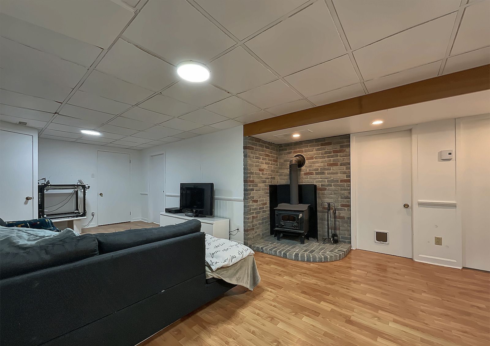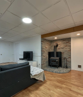 • Cozy wood stove in the basement for those chilly winter evenings.