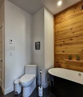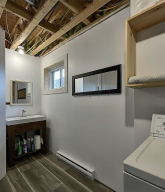 Salle de bain avec plancher chauffant au RDC, 2e salle de bain complète au sous sol avec salle de lavage.