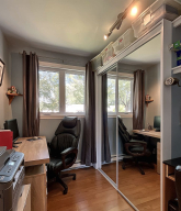 This house has been maintained meticulously over the years and benefits from several improvements, including a large glass roof. On the ground floor, we find 2 bedrooms, 1 office, and a bathroom. The exterior cladding is made of brick and vinyl with an asphalt driveway that can accommodate up to 4 vehicles.