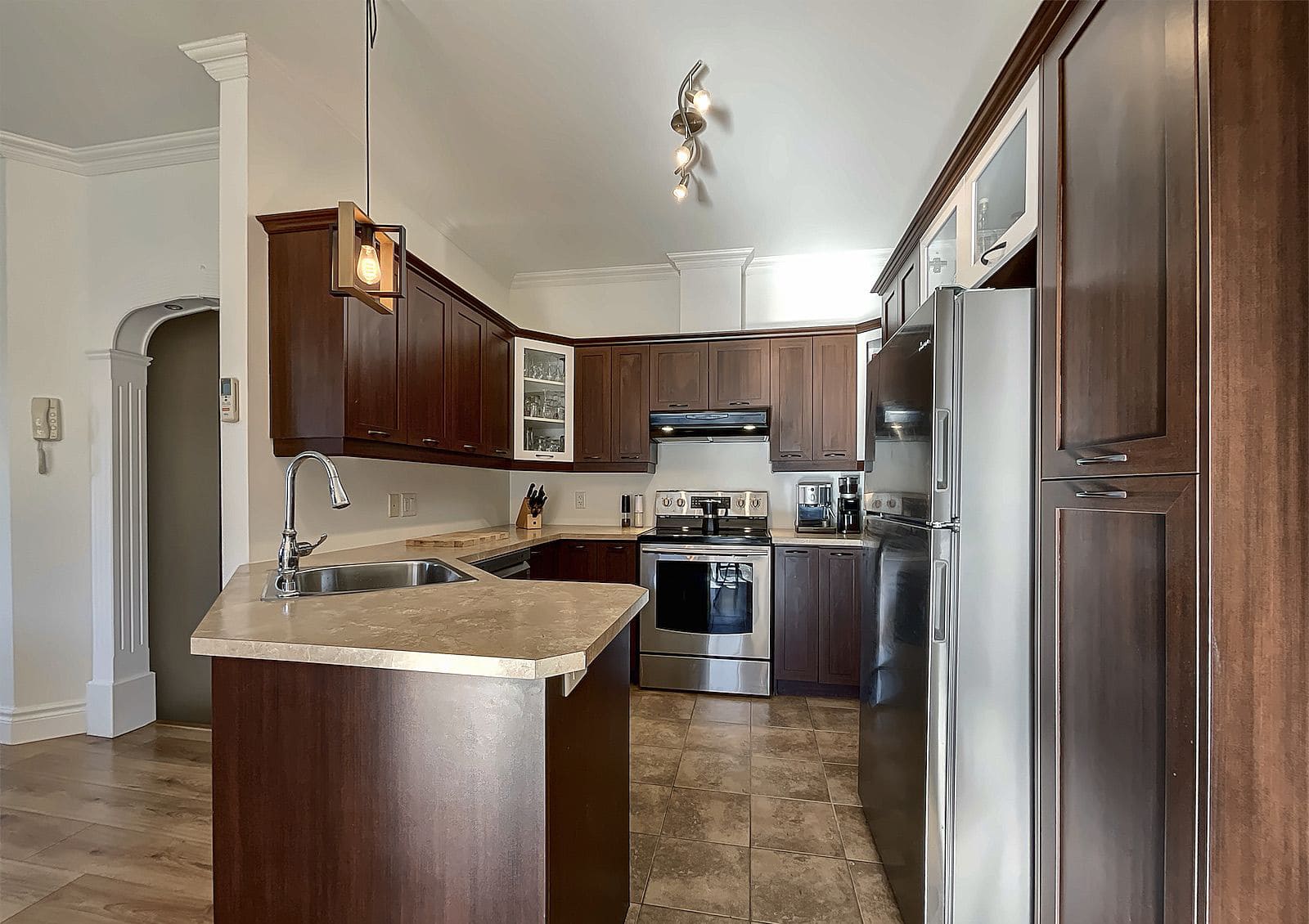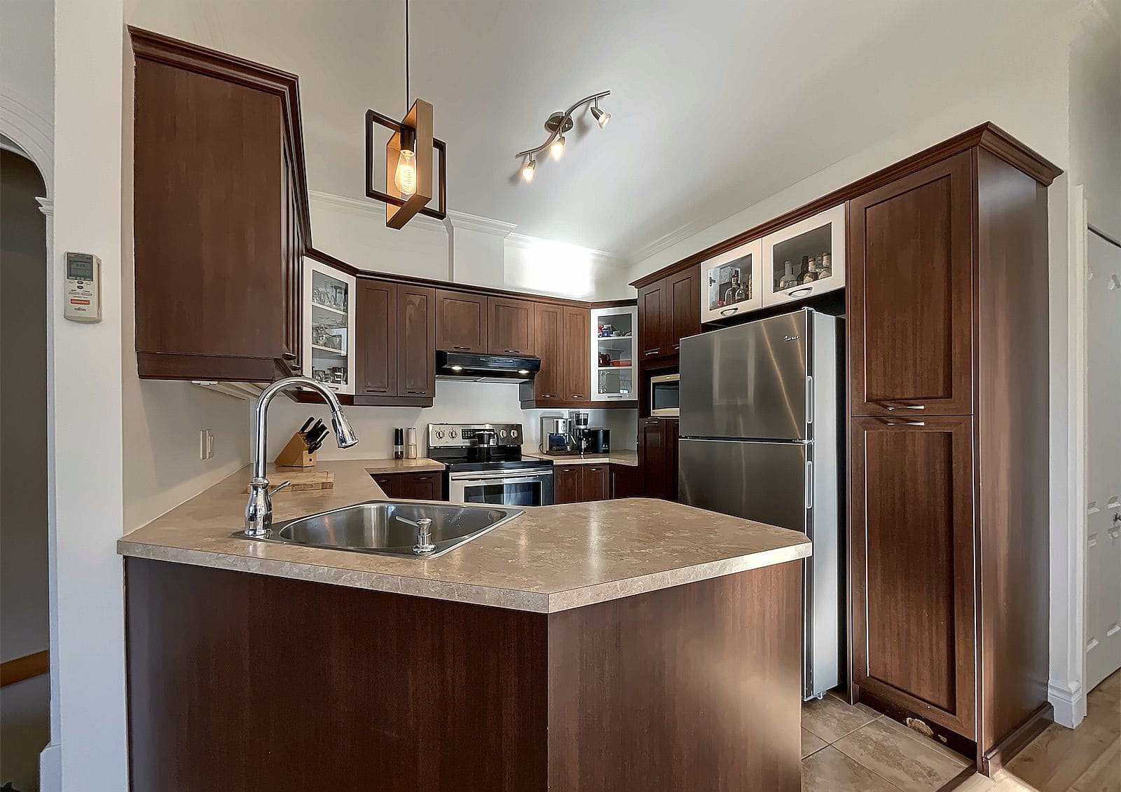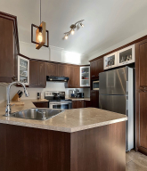 La propriété dispose de plafonds de 9 pieds, d'une douche en céramique au goût du jour, d'un foyer au propane, d'une thermopompe, de deux stationnements privés côte à côte, d'un grand cabanon et d'un balcon couvert privé où les BBQ sont permis. De plus les chats et les chiens de moins de 20 lbs sont autorisés.
