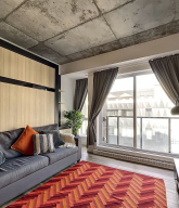 Espace de vie lumineux avec plafonds de 9Â pieds et finition béton pour un style industriel raffiné