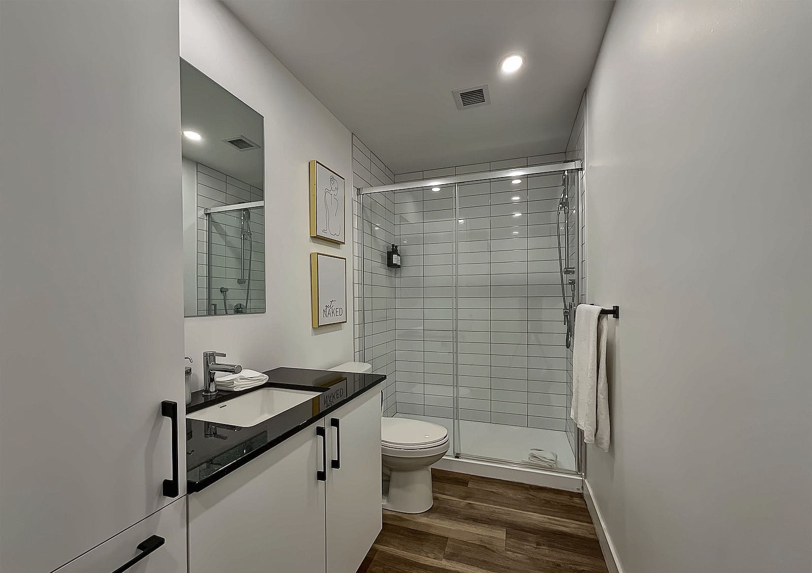Chambre à coucher élégante + salle de bain contemporaine au design soigné